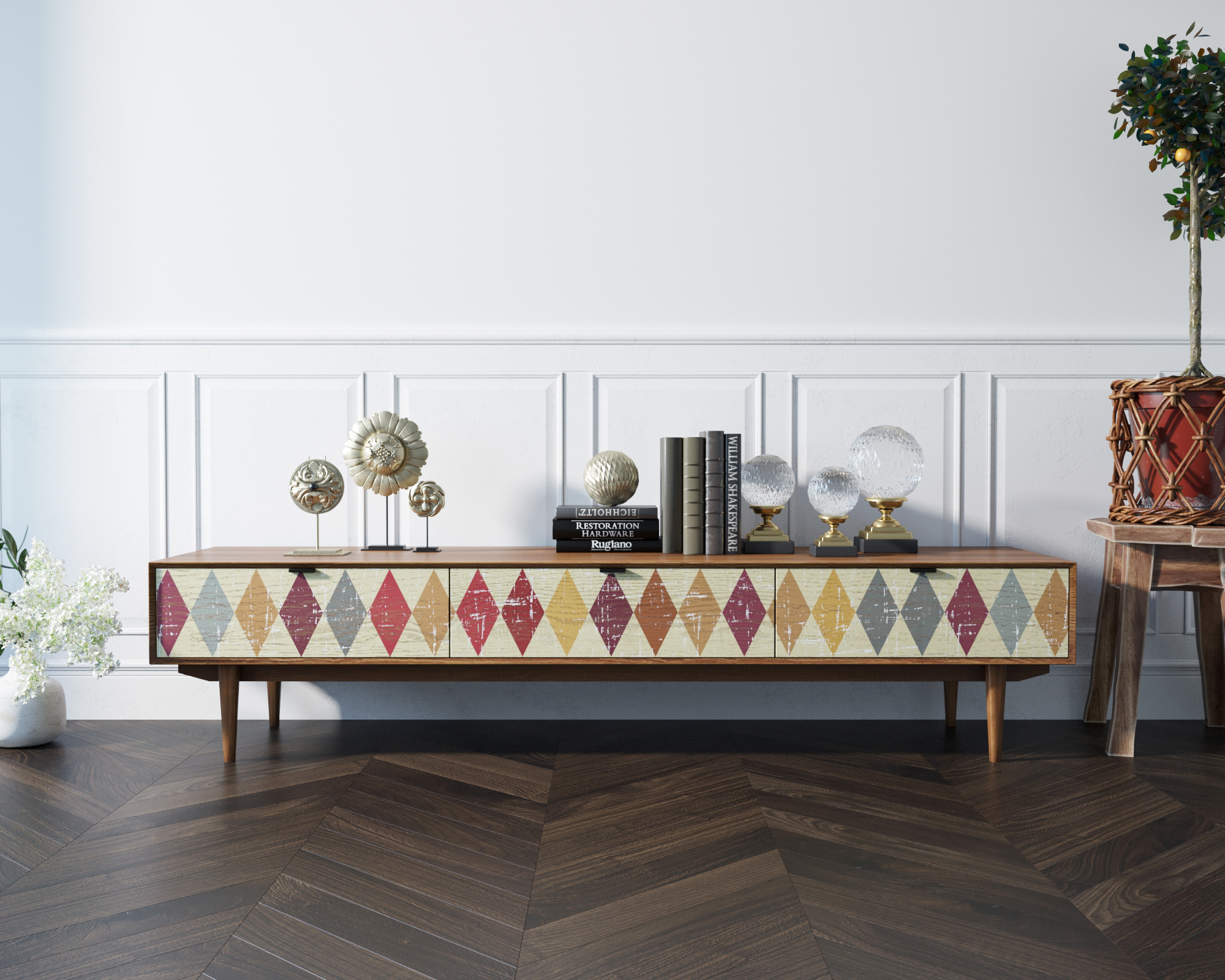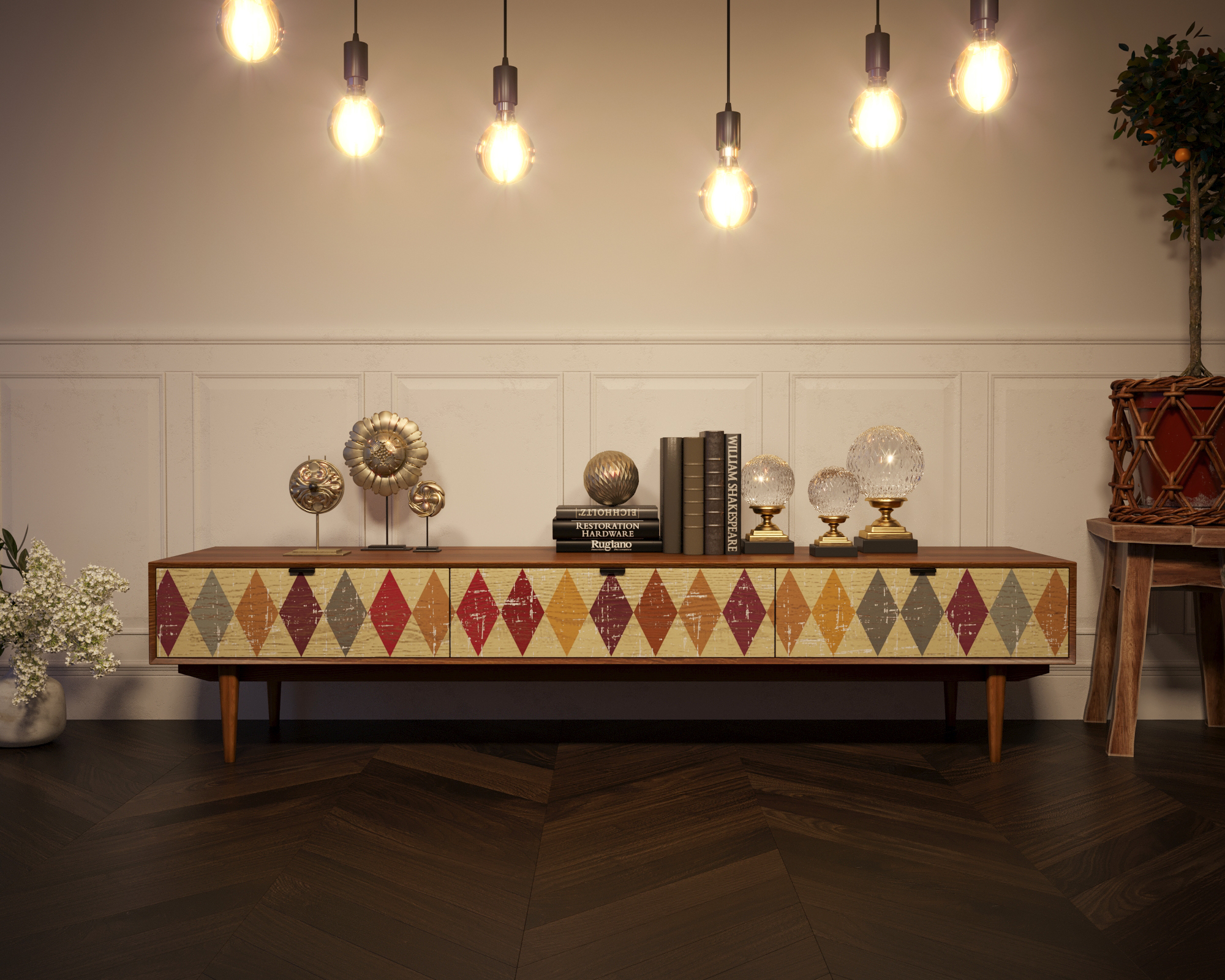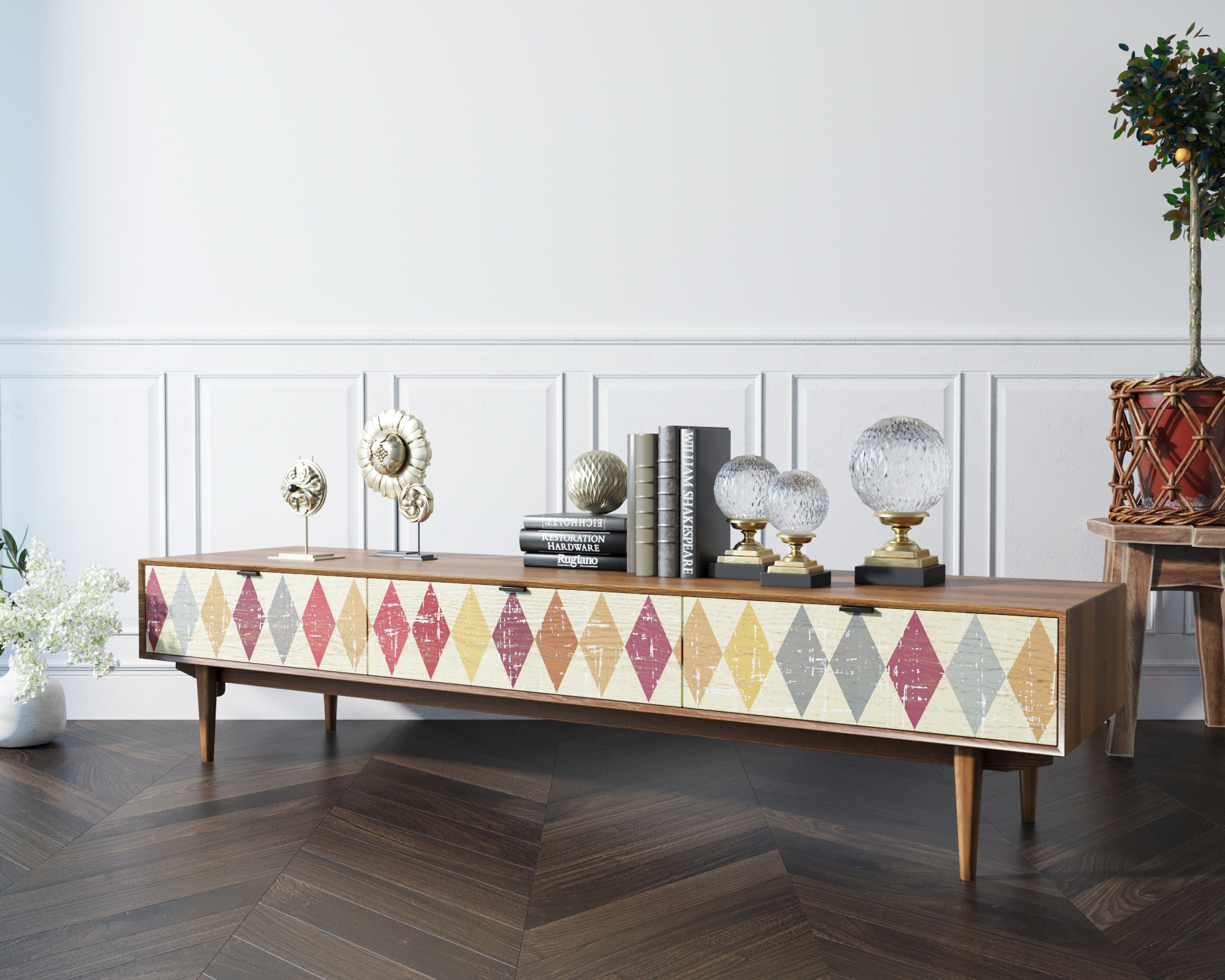Лаконичная, стильная и практичная консоль под TV "Bruni" сочетает в себе все эти характеристики. Благородство дерева и строгость линий наполнят Ваш дом особой атмосферой.