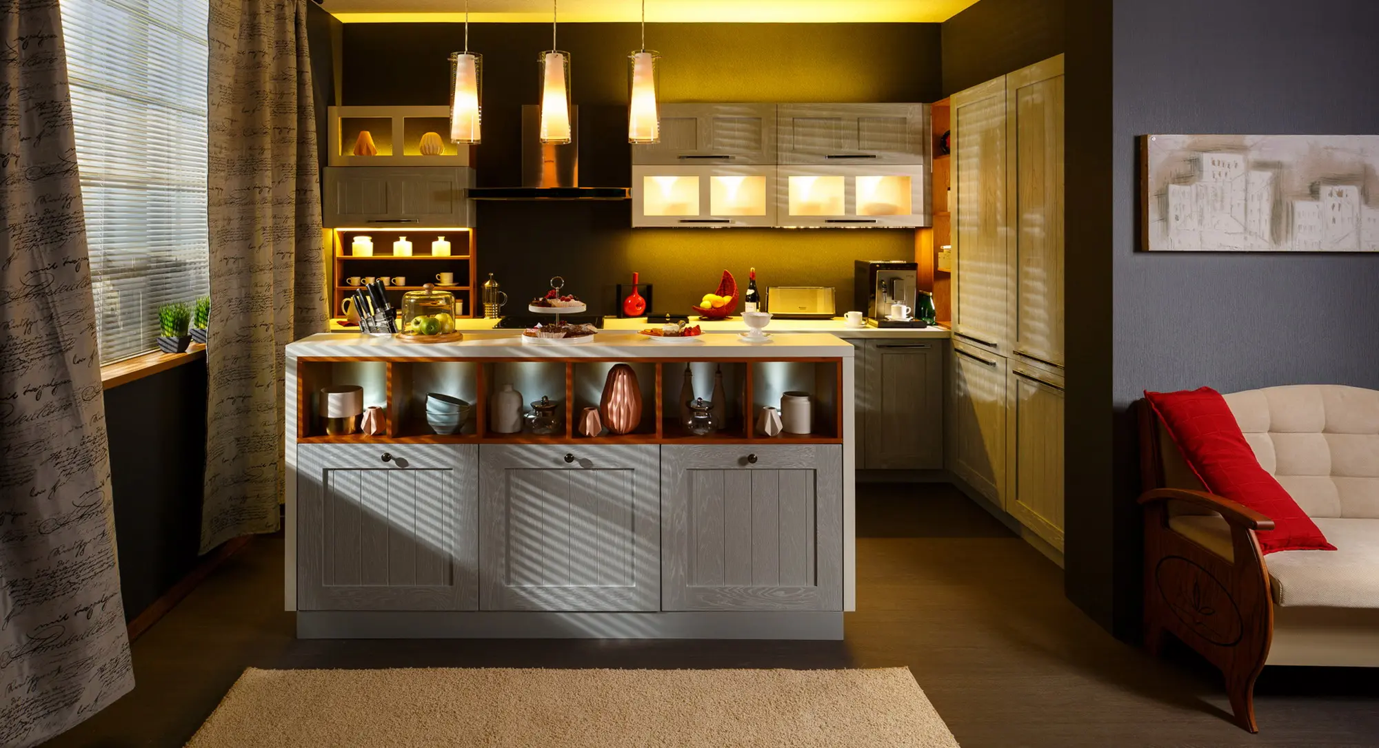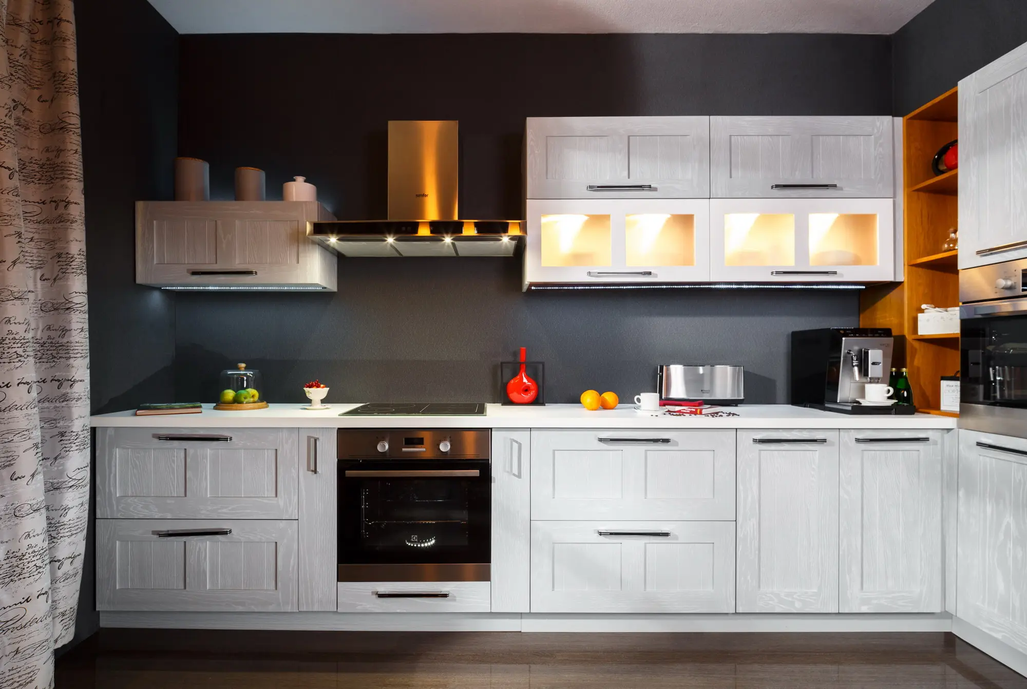 Обращаем внимание, что компания не производит выравнивание полов, стен, укладку керамической плитки, подключение бытовой техники к электросети и водоснабжению, а также других производственных работ, не указанных в спецификации к кухне.