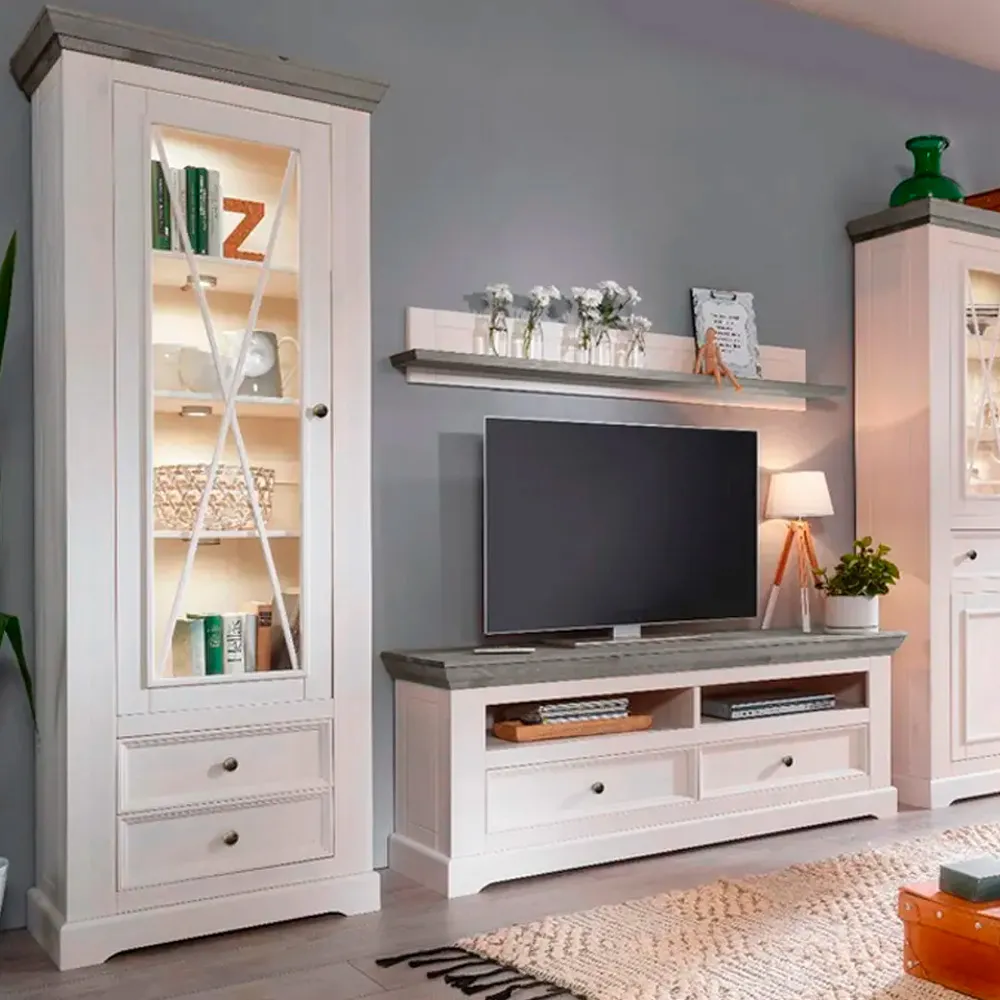 Тумба Форест под ТВ 2-дверная с 1 ящиком белый воск/серый